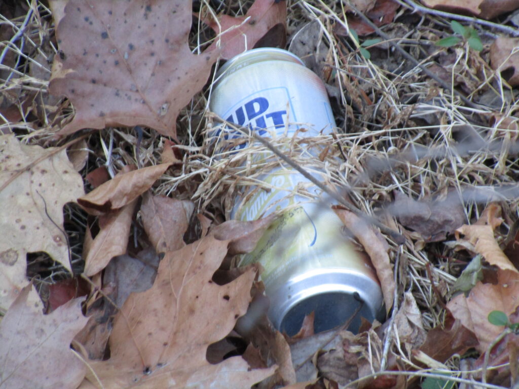 One of the drawbacks of living – and walking – along a country road is the sight of scattered trash, a sad scrum of 21st century humanity: fast food cartons, plastic soda bottles and the ubiquitous Bud Lite cans, apparent drink of choice of the feckless lot who pollute the hollow. I must confess it’s not as bad this year as others; perhaps people are improving or a particularly bad lot has aged out or moved on, but whenever I see trash by the side of the road, I am flummoxed by the thought of who put it there.
